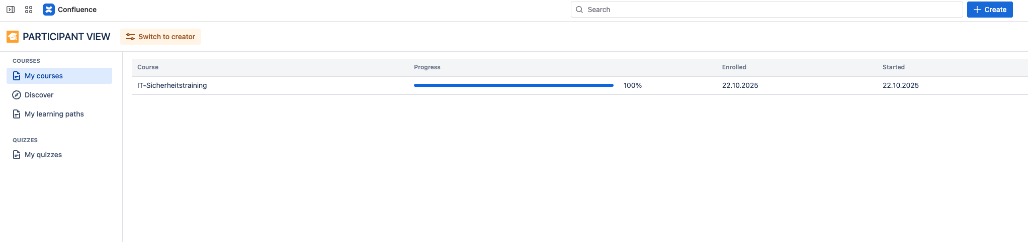 Starte mit einer Abteilung. Nimm deine bestehenden Onboarding-Seiten in Confluence, strukturiere sie zu einem zweiwöchigen Kurs und füge 3–4 Quizze ein. Vergleiche die Zeit bis zur Produktivität davor und danach – das Ergebnis wird dich überzeugen.